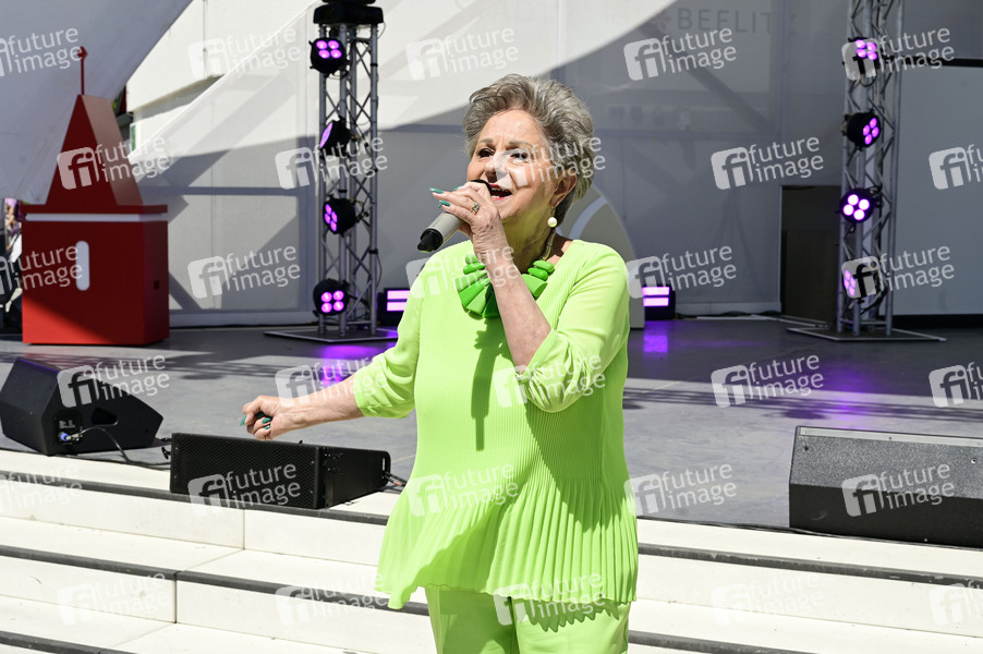 Dagmar Frederic bei der Sommergarten-Show auf der Freilichtbühne im Stadtpark. Beelitz, 12.05.2024