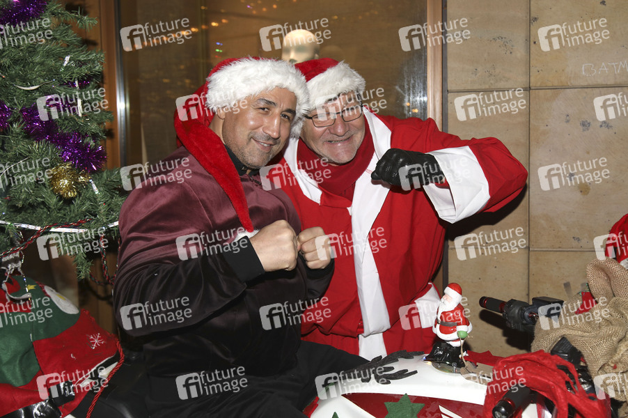 Arthur Abraham und der Weihnachtsmann bei einer Benefizaktion mit Promi-Charity-Grillen an der Glühweinhütte im Einkaufszentrum 'Das Schloss'. Berlin, 07.12.2025