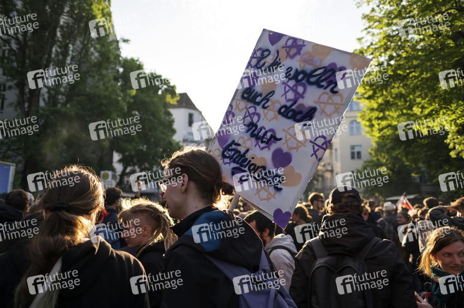 Revolutionäre 1. Mai-Demonstration unter dem Motto GEGEN DIE STADT DER REICHEN zieht durch den Berliner Stadtteil Friedrichshain