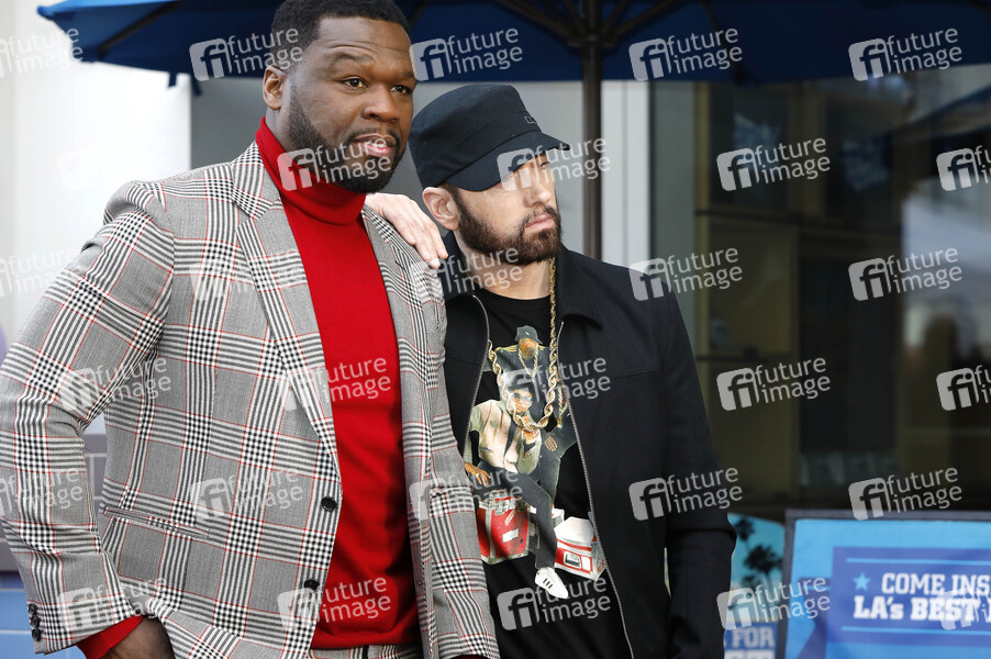 Curtis '50 Cent' Jackson und Eminem bei der Zeremonie zur Verleihung von einem Stern an Curtis '50 Cent' Jackson auf dem Hollywood Walk of Fame. Los Angeles, Los Angeles, 30.01.2020