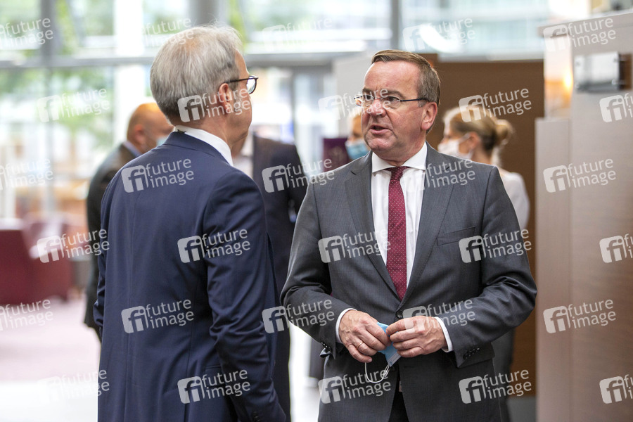 Georg Maier und Boris Pistorius bei der Vorbesprechung der A- und B-Länder während der Innenministerkonferenz Thüringen 2020 im Dorint Hotel. Erfurt, 18.06.2020