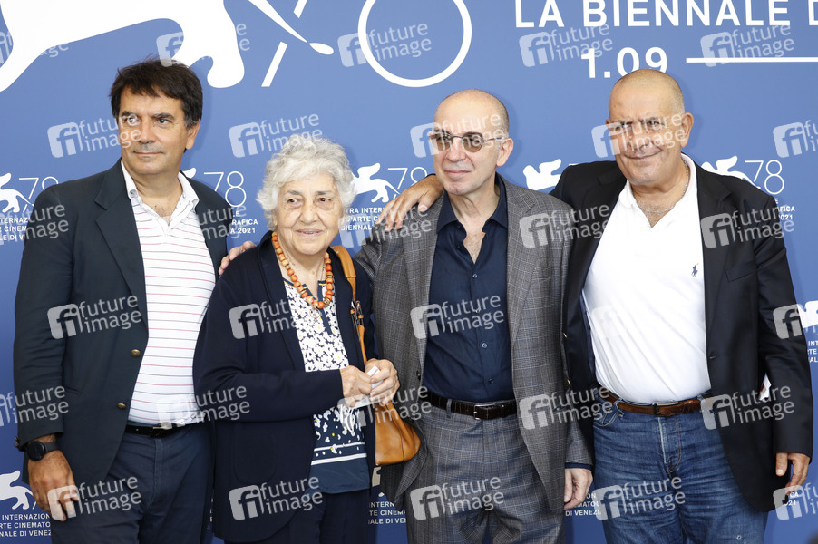 Giovanni Morricone, Maria Travia, Giuseppe Tornatore und Marco Morricone beim Photocall zum Dokumentarfilm 'Ennio: The Maestro' auf der Biennale di Venezia 2021 / 78. Internationale Filmfestspiele von Venedig im Palazzo del Casino. Venedig, 10.09.2021