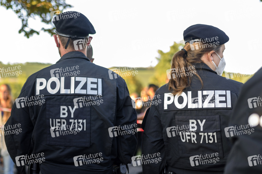 Polizei bei einer Wahlkampfveranstaltung der Grünen auf der Talavera. Würzburg 22.09.2021