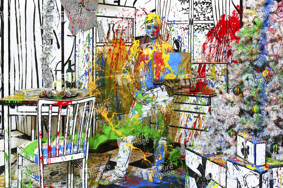 Body Art, Künstler, Körperkunst, Bodypainting, Body Painting, Körpermalerei, Kunst, Art, Fineart, Farbe, Fotografie, Fotoshooting, Fotoart, Fotokunst, Frau, Model, Fotomodell, Fotomodel, farbig, bunt, abstrakte Kunst, moderne Kunst, Artperformance, Kunstperformance, Splash, Splashart, Bunte Weihnacht, Farbkleckse, Farbspritzer, Adventszeit, Weihnachtszeit, Weihnachtsfest, Xmas, X-Mas, Weihnachten, Heilig Abend, Weihnachtsbaum, Tannenbaum, Christbaum, Geschenk, Geschenke, Frohes Fest, Symbolfoto, Symbolbild, model, contempory art, colour, color, Advent Season, Christmas time, Christmas gifts, Christmas tree, Happy Holidays, Christmas Eve, Merry Christmas