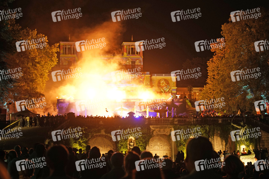Lasershow bei der XXI. Potsdamer Schlössernacht 2019 im Schlosspark Sanssouci. Potsdam, 17.08.2019