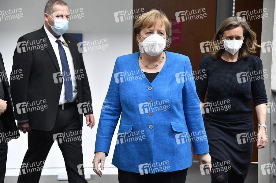 Angela Merkel bei der Ankunft zu ihrer Vernehmung als Zeugin in der 44. Sitzung des 3. Untersuchungsausschusses 'Wirecard' im Paul-Löbe-Haus. Berlin, 23.04.2021