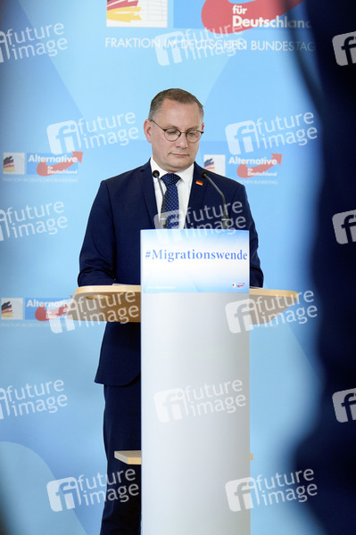 Politik, Statement, Pressekonferenz, PK, Reichstag, Deutscher Bundestag, Demokratie, Parlament, Parlamentsgebäude, Volksvertreter, MdB, Mitglied des Bundestages, Abgeordneter, Politiker, Bundessprecher der AfD, Vorsitzender der AfD-Bundestagsfraktion