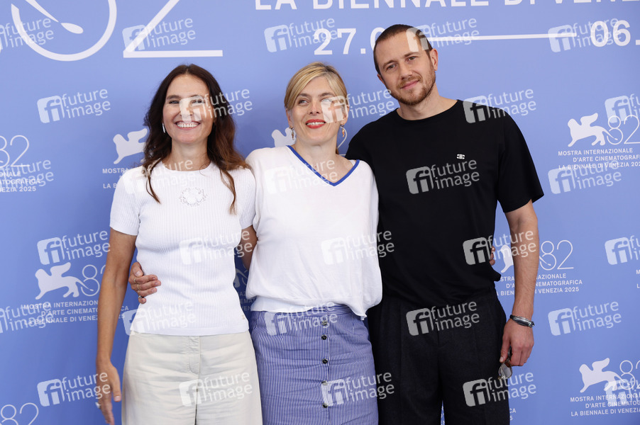 Virginie Ledoyen, Valerie Donzelli und Bastien Bouillon beim Photocall zum Kinofilm 'A pied d'oeuvre' auf der Biennale di Venezia 2025 / 82. Internationale Filmfestspiele von Venedig im Palazzo del Casino. Venedig, 29.08.2025