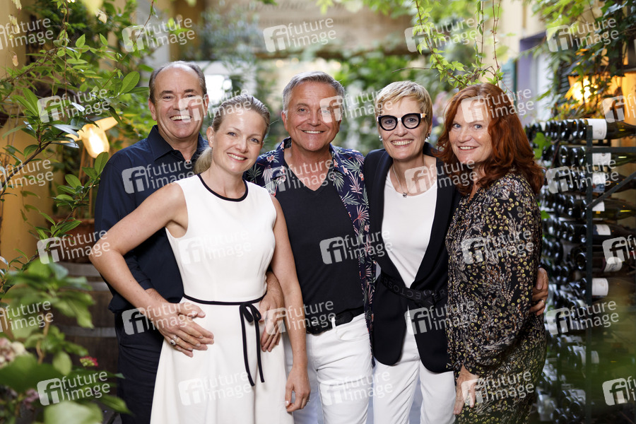Wolfram Kons mit Ehefrau, Alexa Apermann, Jörg Knör mit Ehefrau Gattin Kerstin Goeritz und Pe Werner bei der Geburtstagsfeier zum 60. Geburtstag von Jörg Knör im Restaurant Belgischer Hof auf der Brüsseler Straße. Köln, 17.07.2019