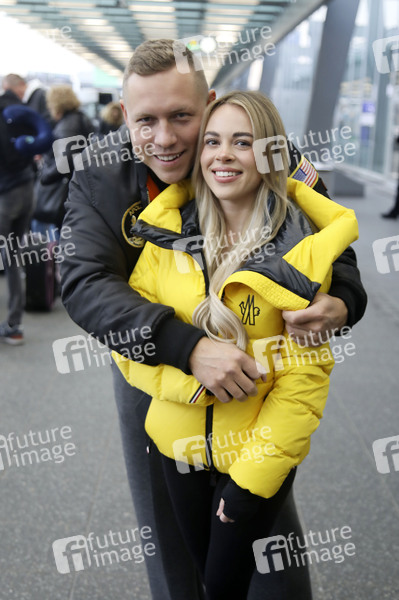 Patrick Romer mit Freundin Annelie Henze bei der Abreise der Dschungelcamp-Kandidaten der RTL Reality-TV-Show 'Ich bin ein Star - holt mich hier raus' nach Australien auf dem Flughafen Frankfurt am Main. Frankfurt, 17.01.2026