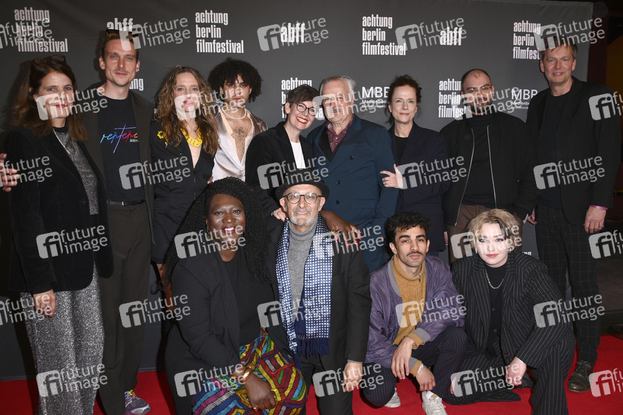 Regina Kräh, Daniel Sträßer, Anne Ratte-Polle, Thelma Buabeng, Lukas von Horbatschewsky, Kerstin Polte, Ramin Yazdani, Bernhard Schütz, Claudia Michelsen, Ivar Wafaei, Tamer Tahan, Bineta Hansen und Sebastian Brose bei der Eröffnung des 21. achtung berlin Filmfestivals mit der Premiere des Kinofilms 'Blindgänger' im Colosseum Filmtheater. Berlin, 02.04.2025