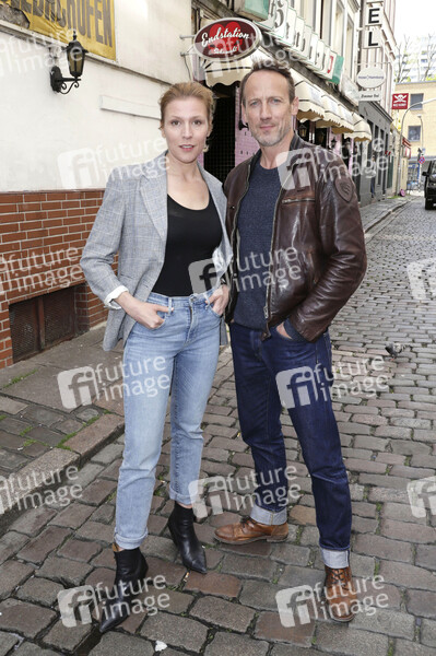 Franziska Weisz und Wotan Wilke Möhring beim Fototermin am Set des ARD-Krimis 'Tatort - Die goldene Zeit' auf St. Pauli. Hamburg, 14.05.2019