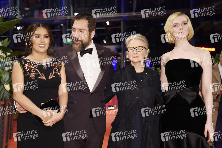 Salma Hayek, Javier Bardem, Sally Potter und Elle Fanning bei der Premiere von 'The Roads Not Taken' auf der Berlinale 2020 / 70. Internationale Filmfestspiele Berlin im Berlinale Palast. Berlin, 26.02.2020