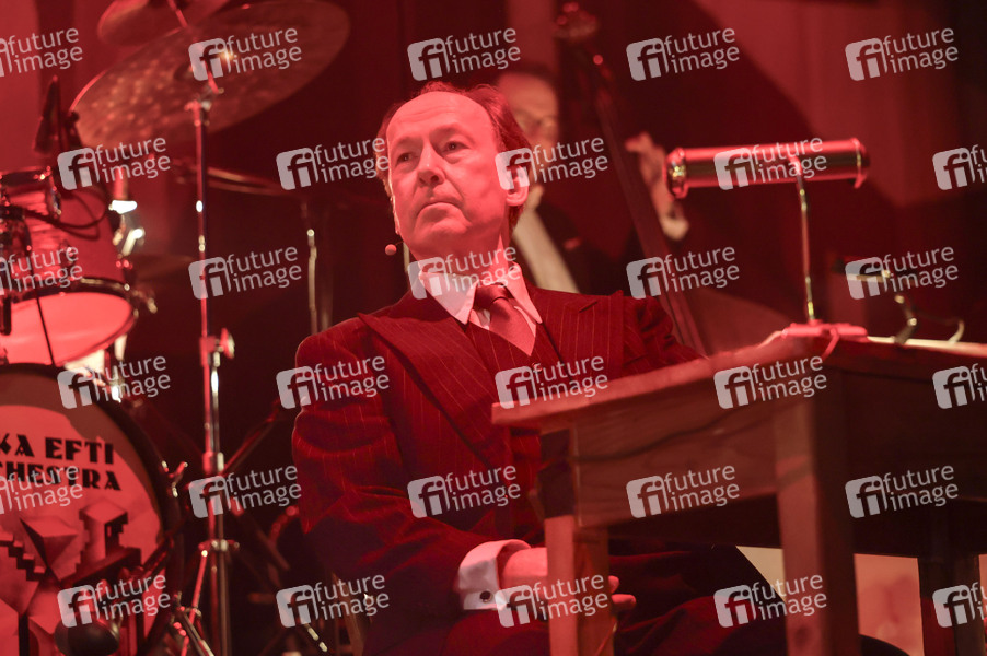 Ulrich Noethen und das Moka Efti Orchestra bei der musikalischen Lesung 'Der nasse Fisch' im Theater am Tanzbrunnen. Köln, 12.03.2025