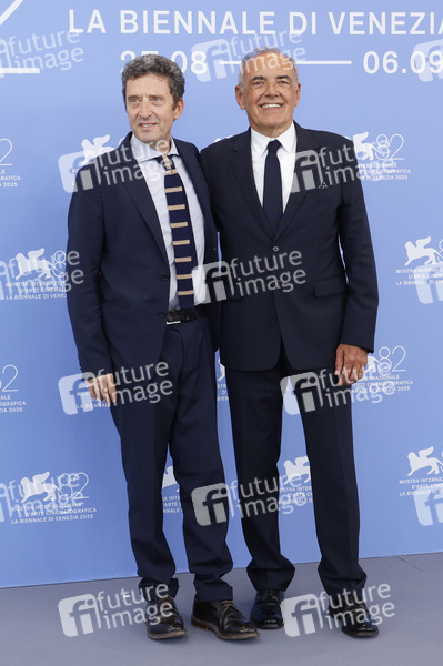 Pietrangelo Buttafuoco und Alberto Barbera beim Photocall mit den Sparten-Jurys auf der Biennale di Venezia 2025 / 82. Internationale Filmfestspiele von Venedig im Palazzo del Casino. Venedig, 27.08.2025
