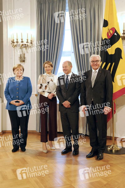 Angela Merkel, Elke Büdenbender, Olaf Scholz und Frank-Walter Steinmeier beim Neujahrsempfang im Schloss Bellevue. Berlin, 09.01.2020