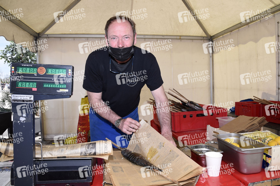 Peter Lingnau (Fisch-Bäda Wiesnstadl) beim Frühlings Drive In auf dem Volksfestplatz. Sowohl die Stadt Erding als auch das Landratsamt haben Das Frühlingsfest To Go genehmigt, die Veranstalter haben ein sicheres Hygienekonzept vorgelegt. Der Frühlings Drive In hat vom 9. April bis einschließlich 18. April 2021 täglich in der Zeit von 11-20 Uhr geöffnet. Insgesamt gibt es sechs Buden. Die Besucher können mit dem Pkw, LKW, Mofa oder Motorrad durchfahren und sich alle Volksfest Leckereien zum mitnehmen bestellen. Das Befahren des Geländes ist derzeit alleine, zu zweit oder mit Personen aus zwei verschiedenen Haushalten zulässig. (Quelle: charivari.de) Erding, 11.04.2021
