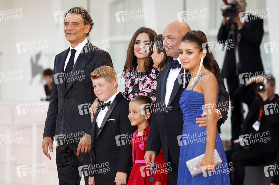 Vincenzo Amato, Patrizio Francioni, Penelope Cruz, Maria Chiara Goretti, Luana Giuliani, Emanuele Crialese und Penelope Nieto Conti bei der Premiere des Kinofilms 'L'immensità' auf der Biennale di Venezia 2022 / 79. Internationale Filmfestspiele von Venedig im Palazzo del Cinema. Venedig, 04.09.2022