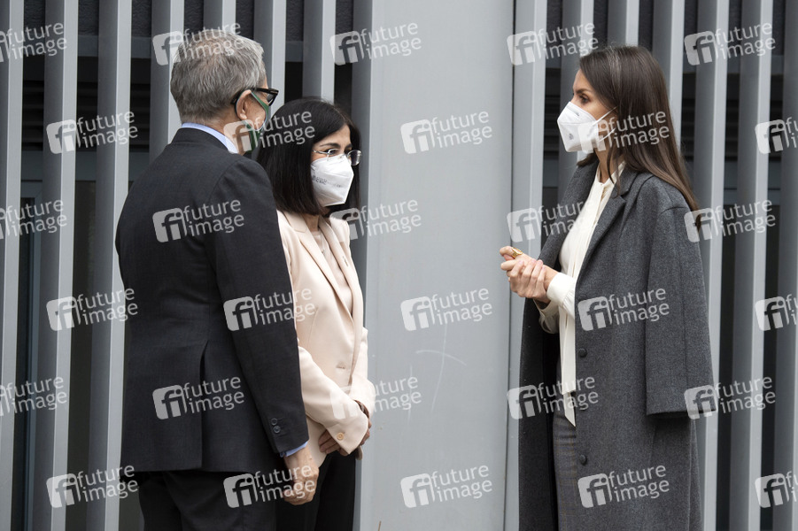Carolina Darias, Ramon Reyes und Königin Letizia von Spanien bei der Ankunft zu einem Treffen der AECC Spanish Association Against Cancer anlässlich des Weltkrebstages. Madrid, 04.02.2021