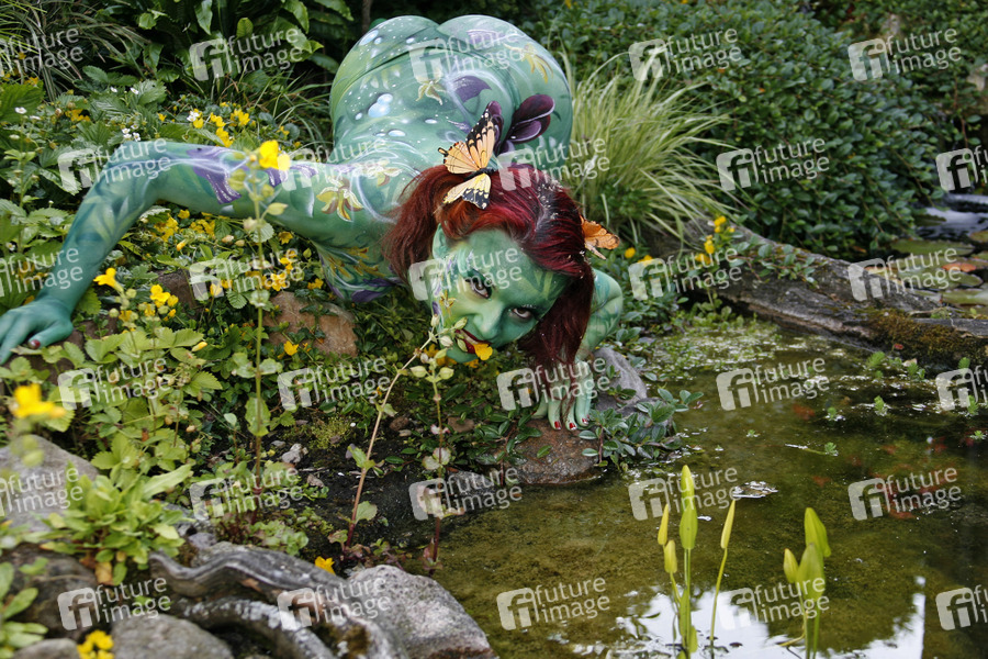 Bodypainting und Fotoshooting mit Model Nadine auf dem 'Tag des offenen Gartens' in Stadthagen-Niedernwöhren. Künstler: Jörg Düsterwald