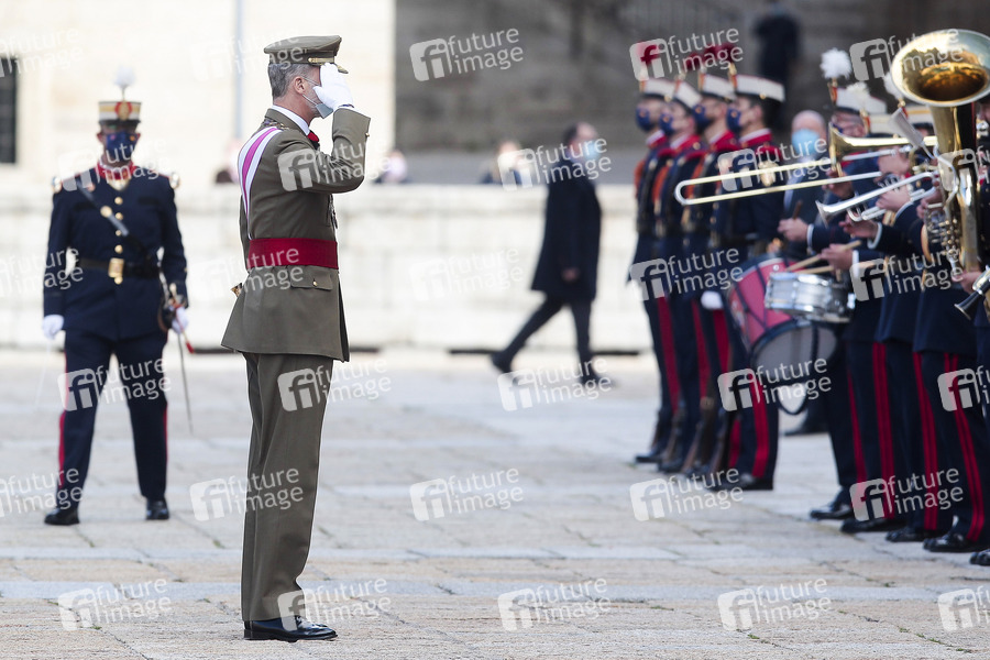 König Felipe VI. von Spanien Felipe VI. bei der Feier des königlichen und militärischen Ordens von San Hermenegildo im Königlichen Kloster von San Lorenzo de El Escorial. San Lorenzo de El Escorial, 27.10.2020