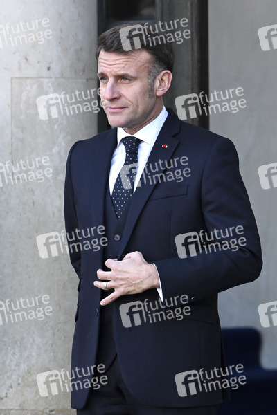 Emmanuel Macron beim Treffen der Koaltion der Willigen zu Beratung über die militärische Unterstützung für die Ukraine im Élysée-Palast. Paris, 06.01.2026