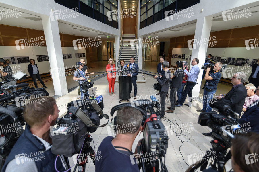 Manuela Schwesig, Malu Dreyer und Thorsten Schäfer-Gümbel bei einer Pressekonferenz der kommissarischen SPD-Parteivorsitzenden nach der Präsidiumssitzung im Berliner Willy-Brandt-Haus. Berlin, 19.08.2019
