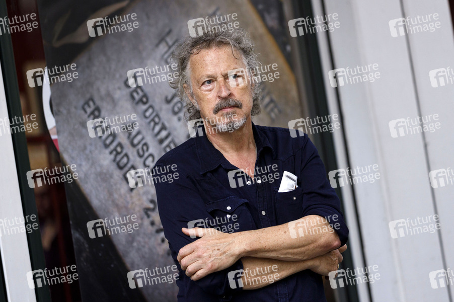 Wolfgang Niedecken bei der Aktion 'Glanz statt Hetze', bei der im Gedenken an die Opfer der NS-Zeit sogenannte Stolpersteine gereinigt werden. Sie erinnern an deportierte und ermordete Kölner Jüdinnen und Juden, an Sinti und Roma, politisch Verfolgte, Homosexuelle, Zwangsarbeiter, Zeugen Jehovas und Opfer der 'Euthanasie'. Köln, 12.08.2020