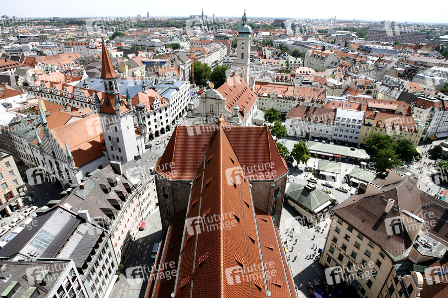 Kirchen, Dächer, Rathausturm, Viktualienmarkt