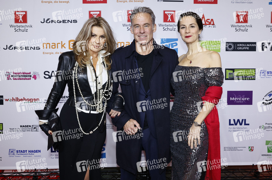 Ivana Hammerle-Szmyt, Marco Girnth und Nina Azizi bei der Eröffnung vom 11. Eat My Shorts - Hagener Kurzfilmfestival 2024 in der Stadthalle. Hagen, 16.11.2024