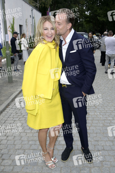 Frauke Ludowig mit Begleitung bei der Marc Cain Fashion Show 'Feel The Moment' auf der Berlin Fashion Week Spring/Summer 2023 im Café am Neuen See. Berlin, 06.09.2022