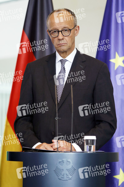 Friedrich Merz beim Empfang des Königs von Jordanien mit militärischen Ehren zu einem gemeinsamen Gespräch mit anschließendem Pressestatement im Bundeskanzleramt. Berlin, 29.07.2025