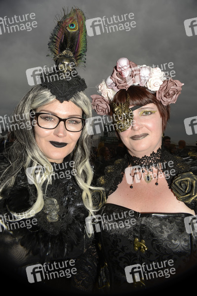 Konzertbesucher, Publikum, Fan, Fans, Gothic Szene, Steampunk, Kostüm, Cosplayer, schwarze Szene, Mera Luna, Meraluna, Musikfestival, Musik, Konzert, Auftritt, Bühne, live, Unterhaltung, Entertainment, Kultur, Open Air