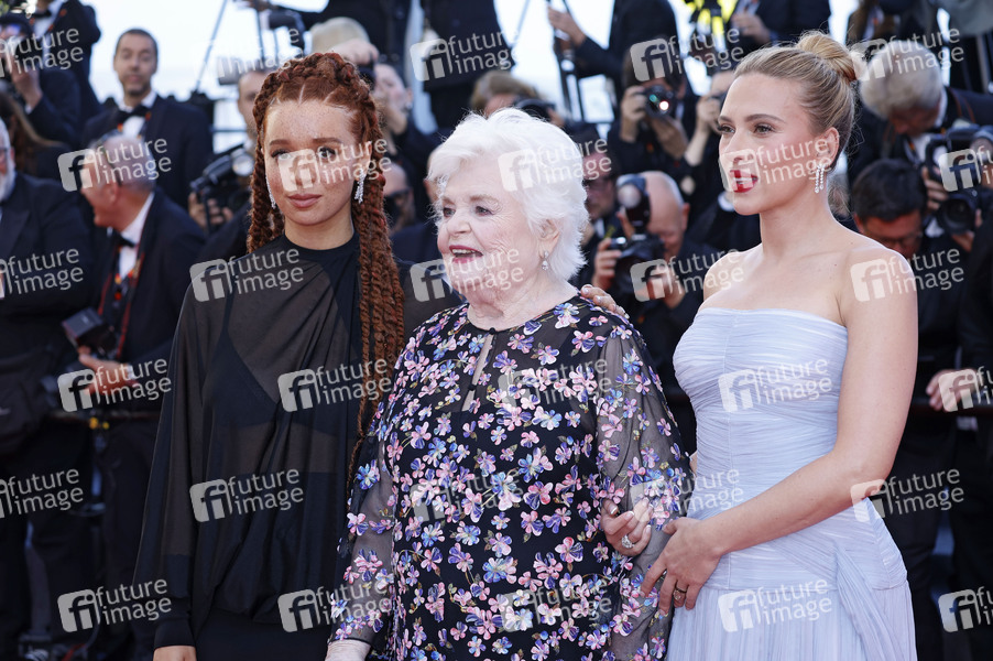 Erin Kellyman, June Squibb und Scarlett Johansson bei der Premiere des Kinofilms 'Vie privée / A Private Life' auf dem Festival de Cannes 2025 / 78. Internationale Filmfestspiele von Cannes im Palais des Festivals. Cannes, 20.05.2025