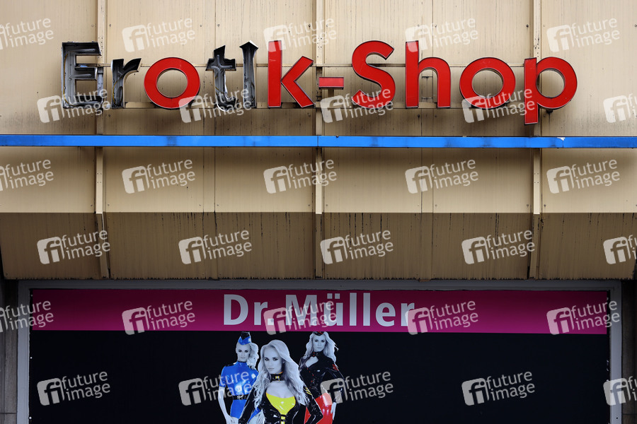 Ein Erotikshop im Bahnhofsviertel von Frankfurt. Das Bahnhofsviertel gilt als sozialer Brennpunkt und der sogenannte 'Frankfurter Weg' als gescheitert. (Themenbild, Symbolbild) Frankfurt, 15.10.2021