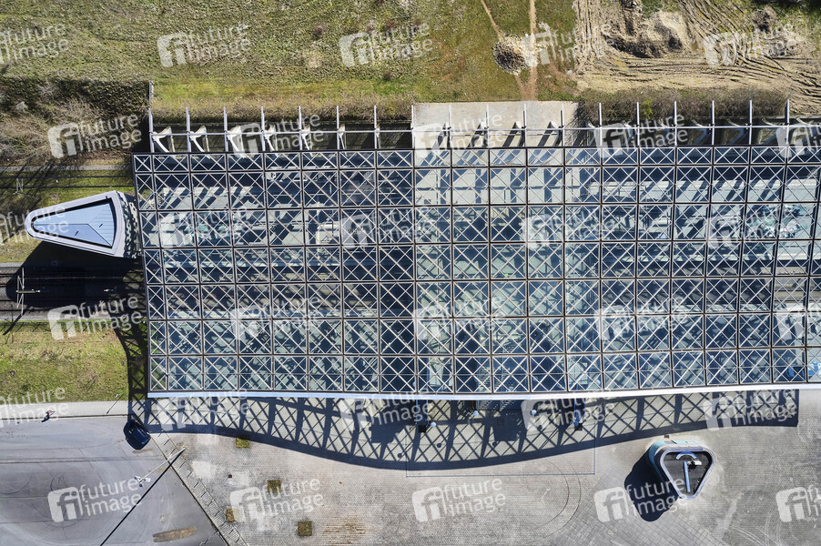 Luftbild, Expogelände, Expo-Park Hannover, Expo 2000, U-Bahn, üstra, GVH, Großraumverkehr, Haltestelle, Endhaltepunkt der Stadtbahn-Linie 6, Messe Hannover, Haltestelle Messe/Ost