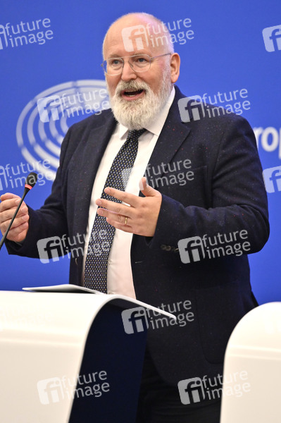 Frans Timmermans bei einer Pressekonferenz zu erneuerbaren Energien im Europäischen Parlament. Straßburg, 14.09.2022