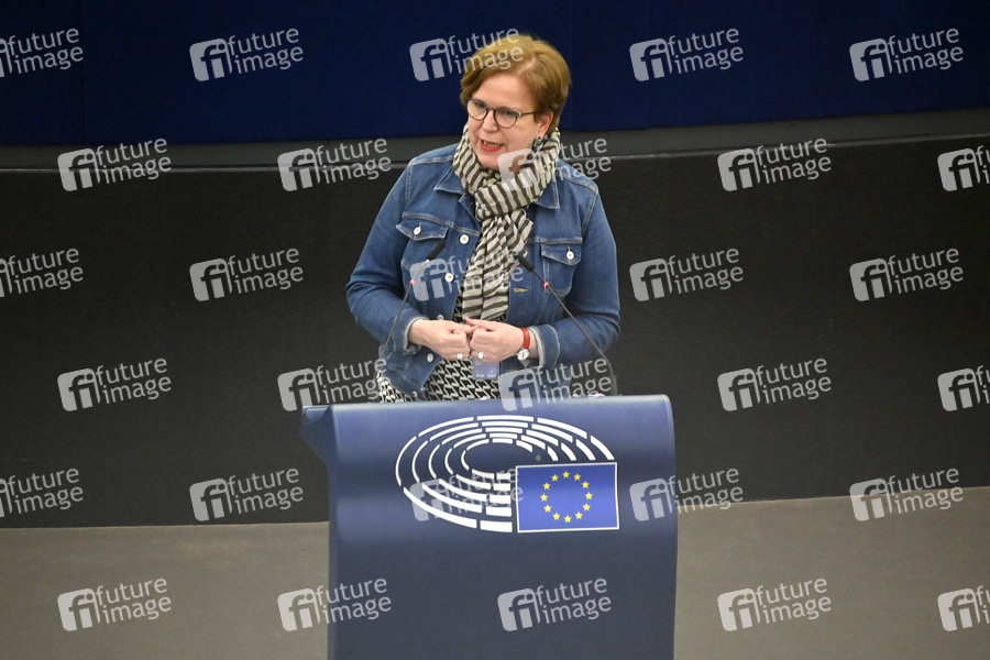 Gabriele Bischoff bei einer Plenartagung mit Laufenden Anhörungen gemäß Artikel 7 Absatz 1 EUV zu Polen und Ungarn im Plenarsaal des Europäischen Parlaments. Straßburg, 06.04.2022