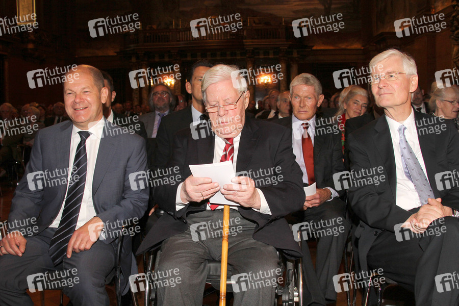 Olaf Scholz, Helmut Schmidt und Henning Voscherau bei der Verleihung vom Deutschen Nationalpreis 2013 an die deutschen Jugendfeuerwehren im Rathaus. Hamburg, 05.06.2013
