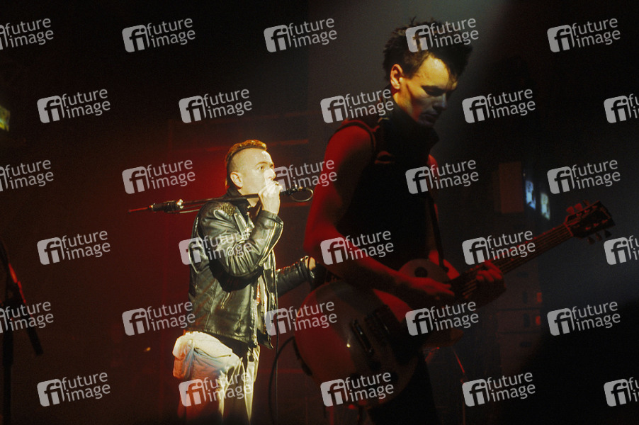 Joe Strummer und Vince White von The Clash live bei einem Konzert der 'Out of Control'-Tour in der Brixton Academy. London, 06.12.1984