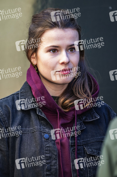 Luisa Neubauer bei der Demonstration unter dem Motto 'Wir sind die Brandmauer' gegen die AfD und den Rechtsruck auf dem Neumarkt. Dresden, 25.02.2024