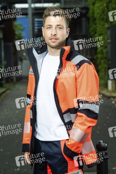 Dominik Flade bei einem Fototermin mit dem dem Deutschen Roten Kreuz e.V. am Set der RTL TV-Serie 'Alles was zählt' in den MMC-Studios in Ossendorf. Der AWZ-Schauspieler bereitet sich mit Hilfe des DRK auf seine Rolle des Rettungssanitäters vor. Köln, 23.06.2021