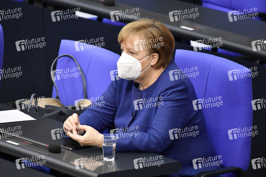 Angela Merkel in der 212. Sitzung des Deutschen Bundestages im Reichstagsgebäude. Berlin, 25.02.2021
