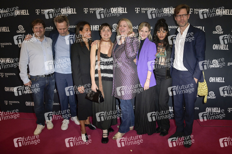 Arnim Butzen, Gast, Sarah Blaßkiewitz, Mala Emde, Anke Greifeneder, Gast, Salka Weber und Moritz von der Groeben bei der Premiere der 2. Staffel der Magenta TV Original Serie 'Oh Hell' im Kino Babylon. Berlin, 14.03.2024