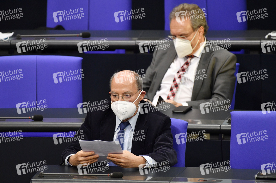 Gregor Gysi und Klaus Ernst in der 208. Sitzung des Deutschen Bundestages im Reichstagsgebäude. Berlin, 10.02.2021