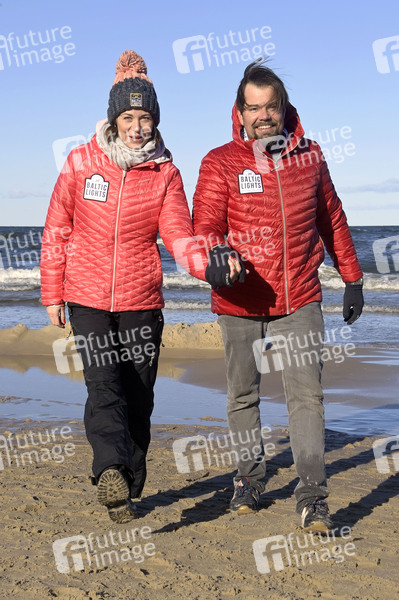Jessica Ginkel mit Ehemann Daniel Fehlow beim Baltic Lights 2023 Charity-Hunderennen zu Gunsten der Welthungerhilfe zwischen der Seebrücke Ahlbeck und der Seebrücke Heringsdorf. Heringsdorf, 04.03.2023