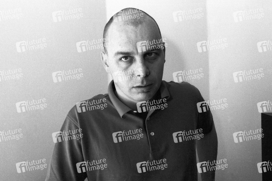 Photoshooting mit Bill Carter von The Screaming Blue Messiahs im WEA Records Office. London, 20.11.1987