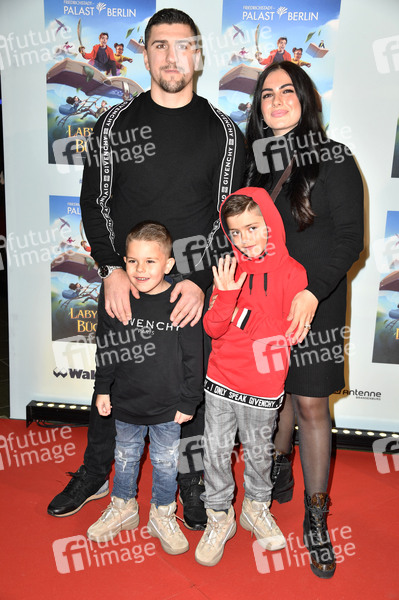 Marco Huck mit Ehefrau Amina und Söhnen Kerim und Kadir bei der Premiere der Young Show 'Im Labyrinth der Bücher' im Friedrichstadt-Palast. Berlin, 17.11.2019