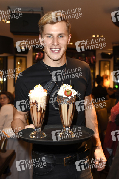 Lukas Sauer kellnert im Rahmen der Pinktober Charity-Aktion zugunsten der Organisation Brustkrebs Deutschland e.V. im Hard Rock Cafe. Berlin, 27.10.2019