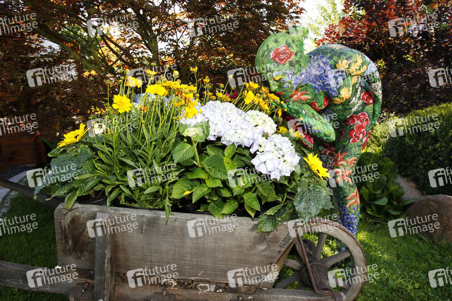 Bodypainting, Body-Painting, Erotik, Frau, Mädchen, nackt, Akt, weiblich, Körperkunst, Körperfarben, Farbe, Bemalung, Kunst, Malerei, Garten, Gartenarbeit, Natur, Blumen, Pflanzen, Gartenbau, Gartengerät, Schubkarre, body painting, erotic, woman, girl, nude, female, body art, colors, garden, gardening, nature, flowers, plants, wheelbarrow, Joerg Duesterwald